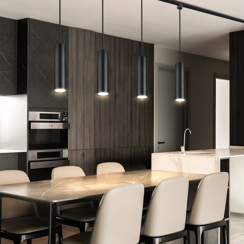 Modern Nordic style chandelier in restaurant kitchen